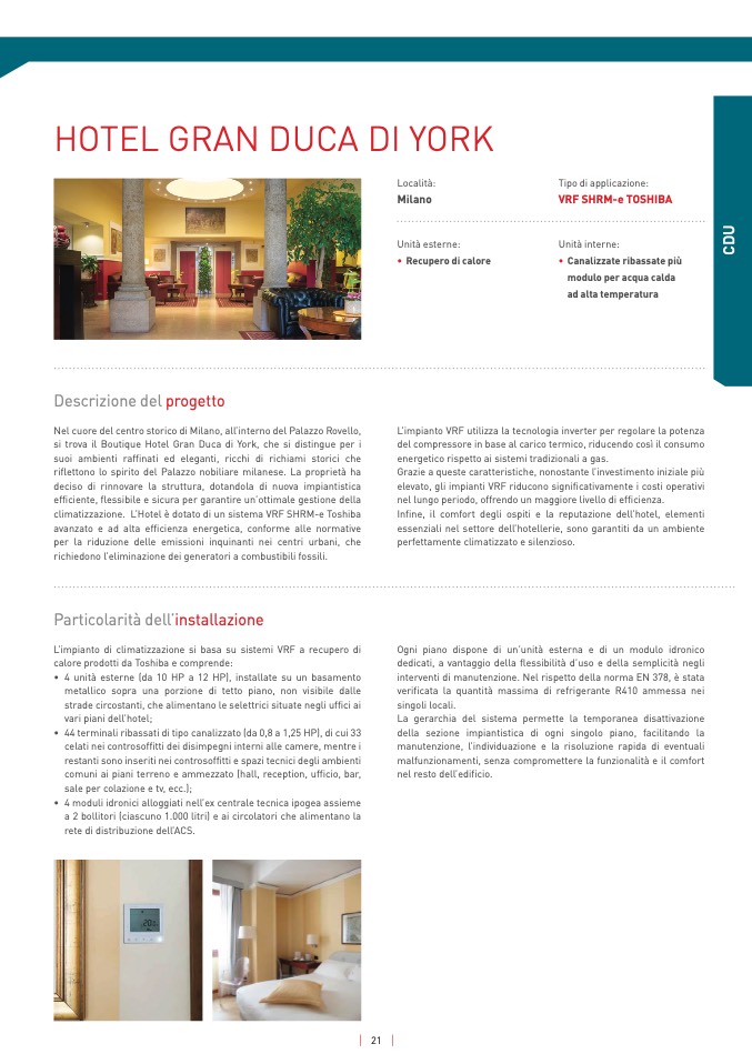 climatizzazione. L’Hotel è dotato di un sistema VRF SHRM-e Toshib