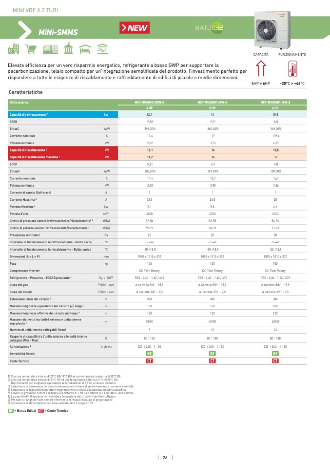 5) Il livello di pressione sonora è indicato alla distanza di 1 mt e all’altezza di 1,5 mt dalle unità esterne