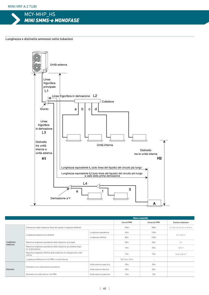 Lunghezza effettiva tra il kit PMV e l’unità interna