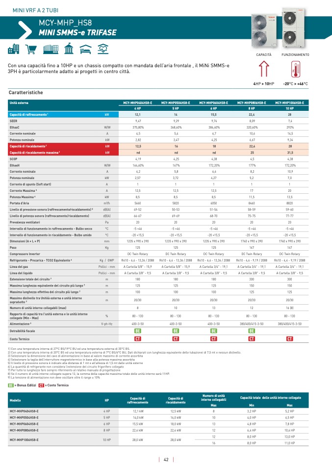 5) Il livello di pressione sonora è indicato alla distanza di 1 mt e all’altezza di 1,5 mt dalle unità esterne