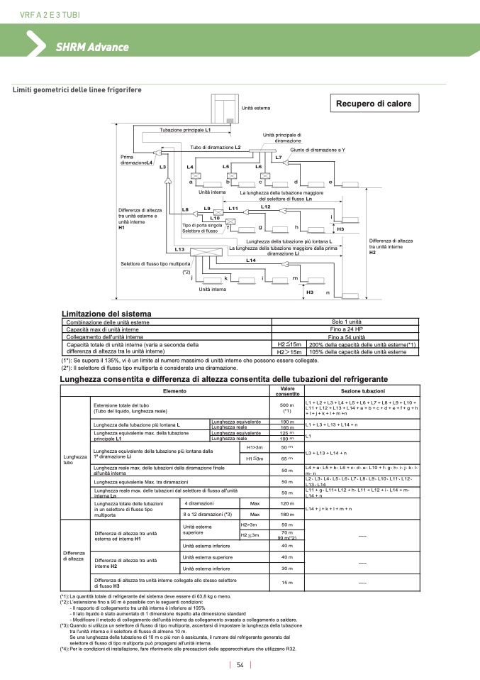 (*1): La quantità totale di refrigerante del sistema deve essere di 63,8 kg o meno