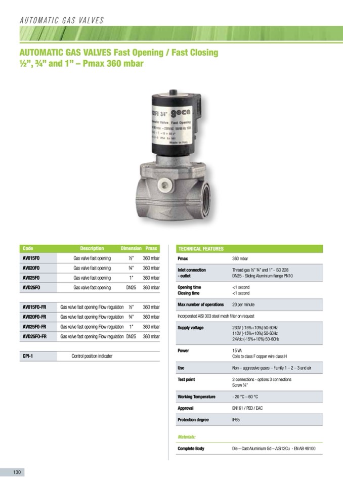 Gas valve fast opening Flow regulation