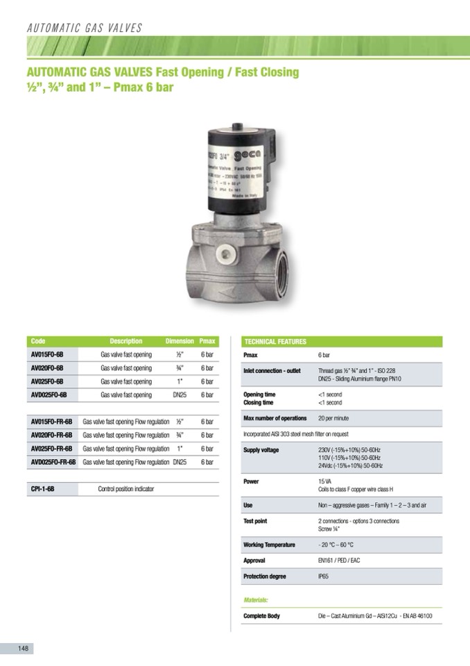 Gas valve fast opening Flow regulation
