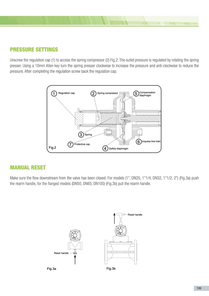 For models (1”, DN25, 1”1/4, DN32, 1”1/2, 2”) (Fig.3a) push the rearm handle,
