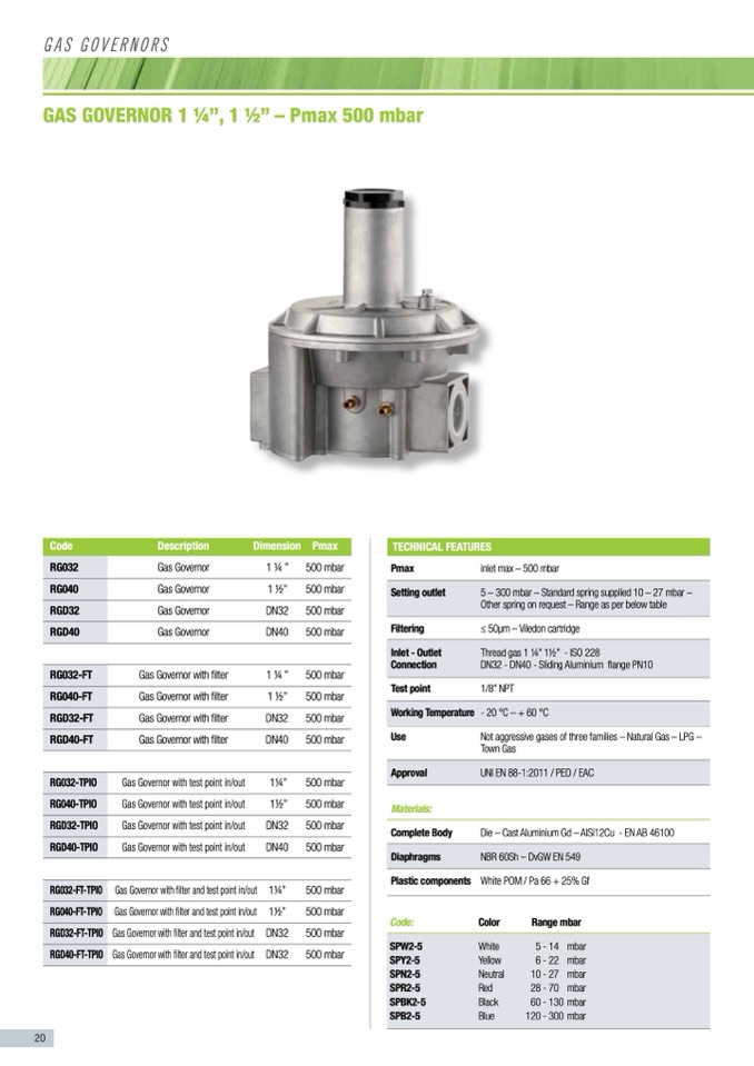 5 – 300 mbar – Standard spring supplied 10 – 27 mbar –