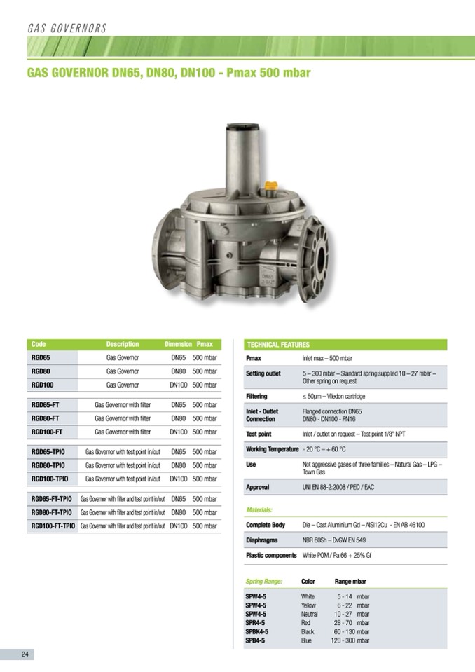 5 – 300 mbar – Standard spring supplied 10 – 27 mbar –