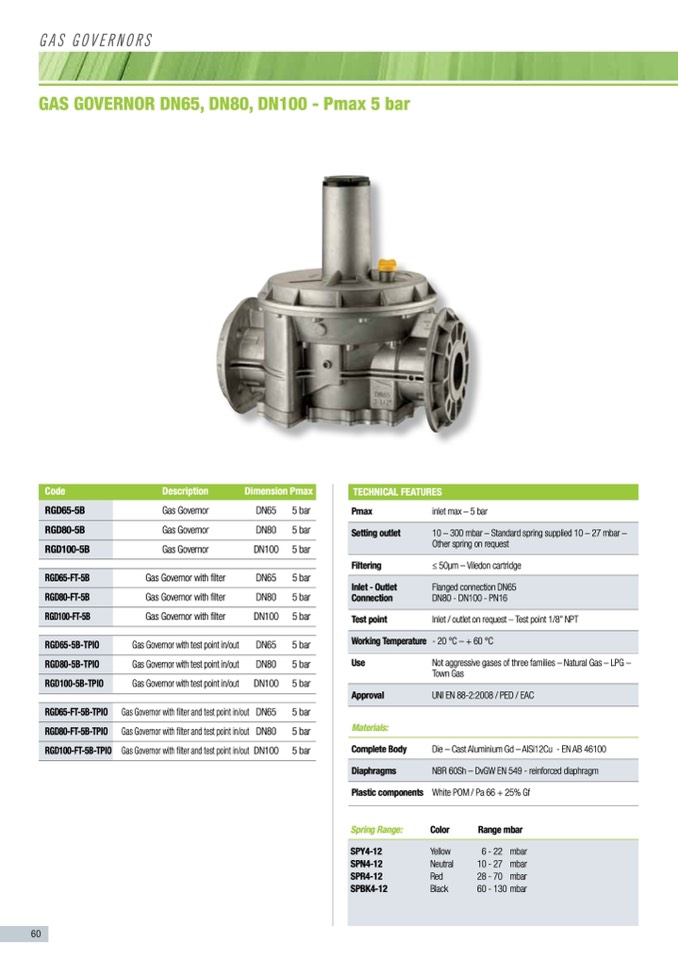 10 – 300 mbar – Standard spring supplied 10 – 27 mbar –