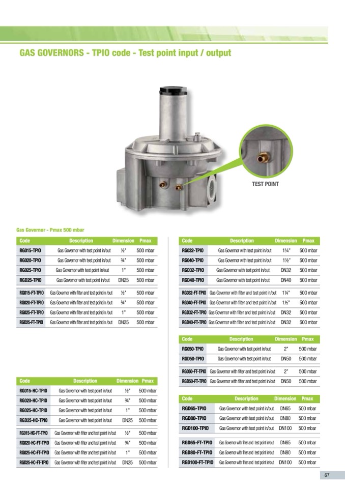 Gas Governor with test point in/out