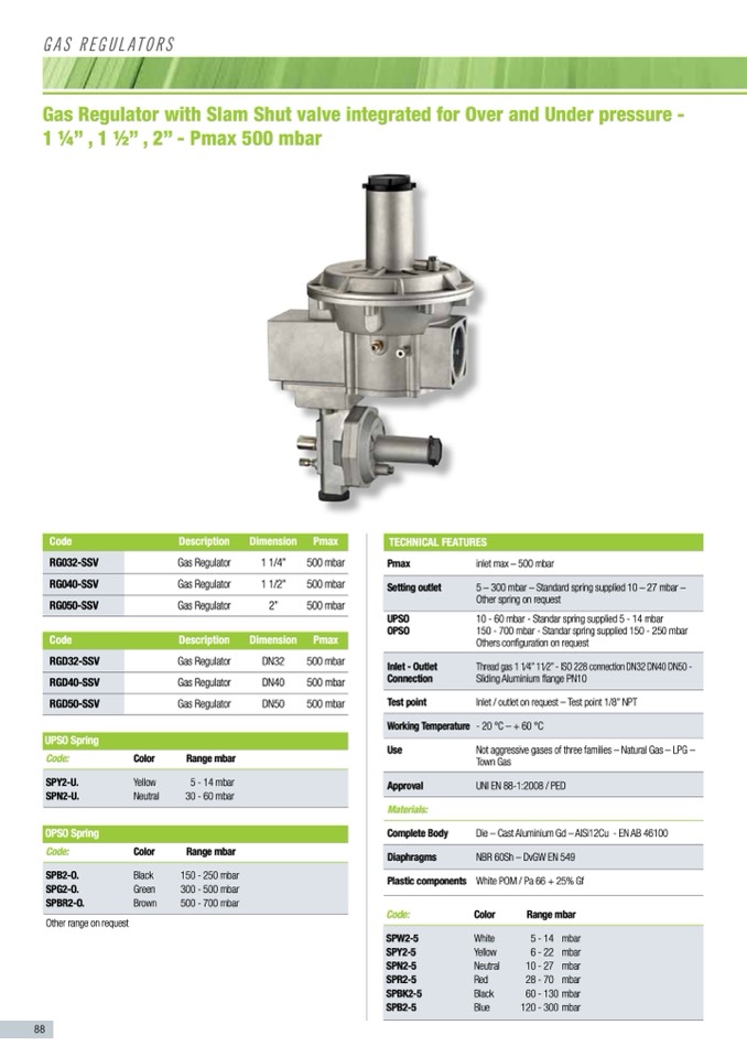 150 - 700 mbar - Standar spring supplied 150 - 250 mbar