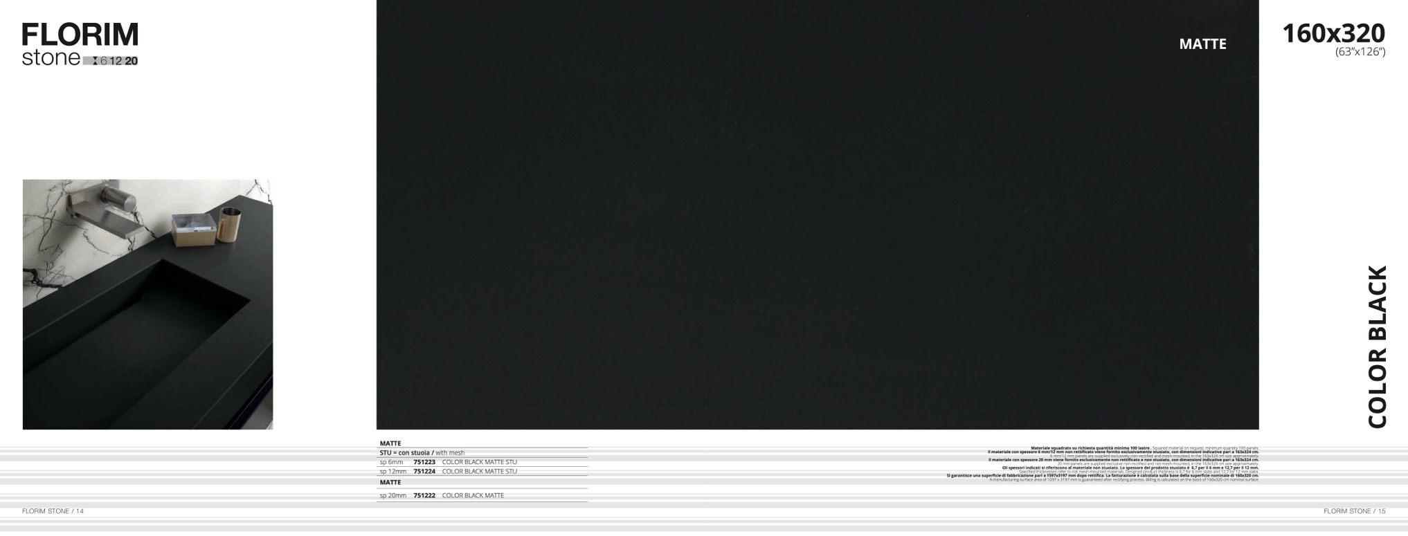 facturing surface area of 1597 x 3197 mm is guaranteed after rectifying process. Billing is calculated on the basis of 160x320 cm nominal surface.