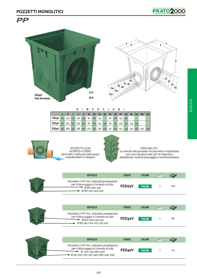 la conicità del pozzetto ne permette l'impilabilità