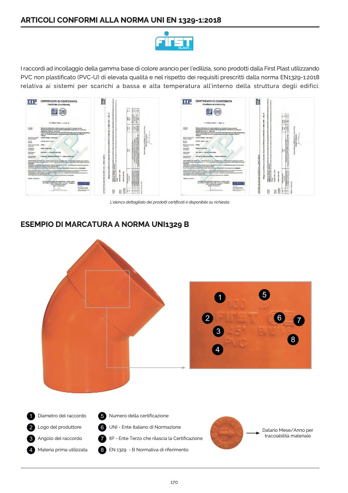 I raccordi ad incollaggio della gamma base di colore arancio per l’edilizia, sono prodotti dalla First Plast utilizzando