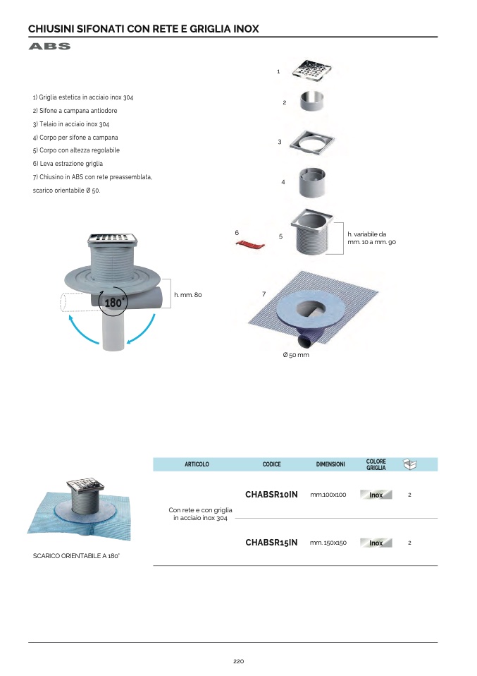 2) Sifone a campana antiodore