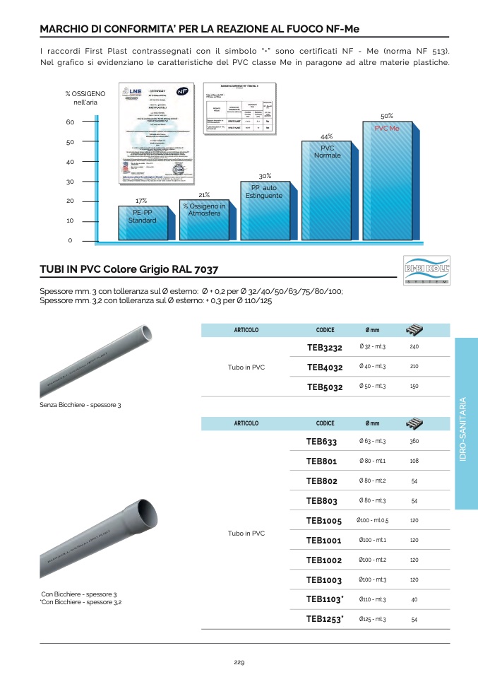 I raccordi First Plast contrassegnati con il simbolo “•” sono certificati NF - Me (norma NF 513).