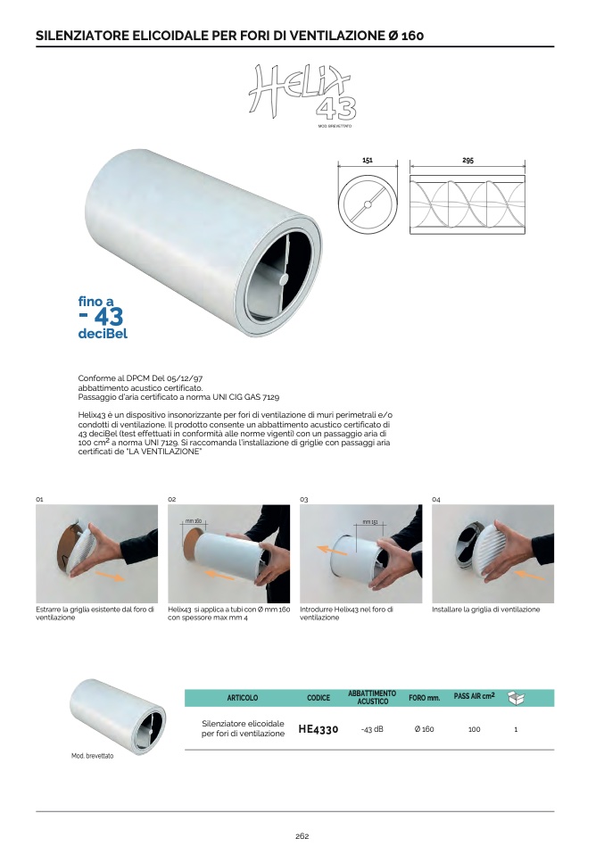 Helix43 è un dispositivo insonorizzante per fori di ventilazione di muri perimetrali e/o