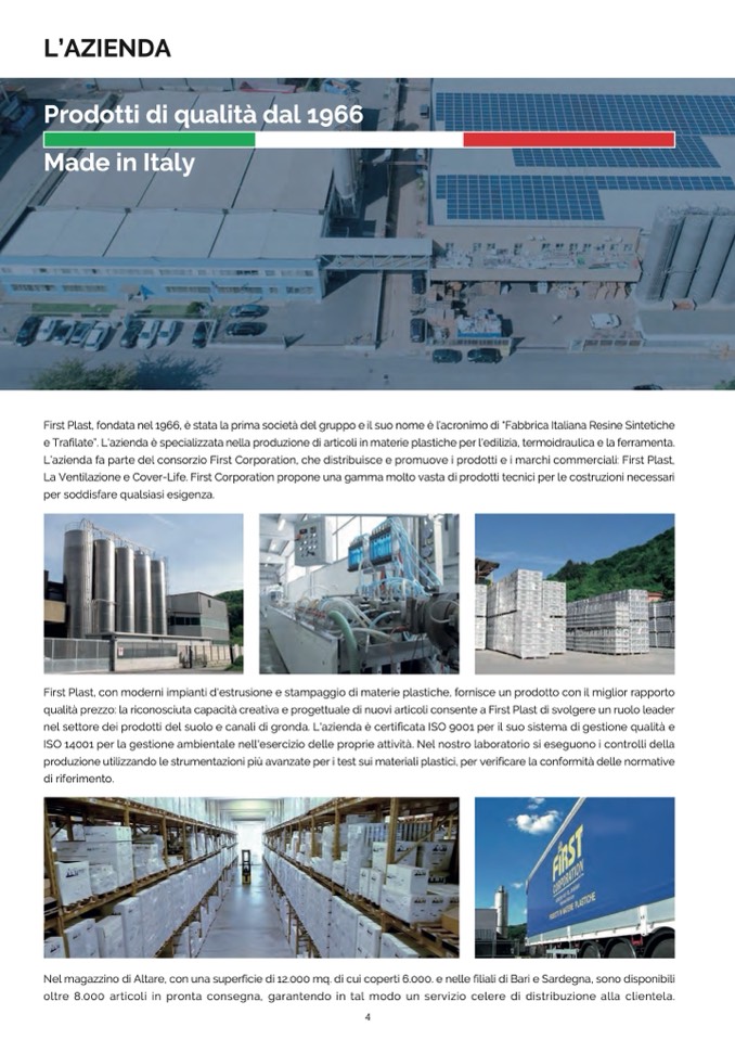 L’azienda fa parte del consorzio First Corporation, che distribuisce e promuove i prodotti e i marchi commerciali: First Plast,