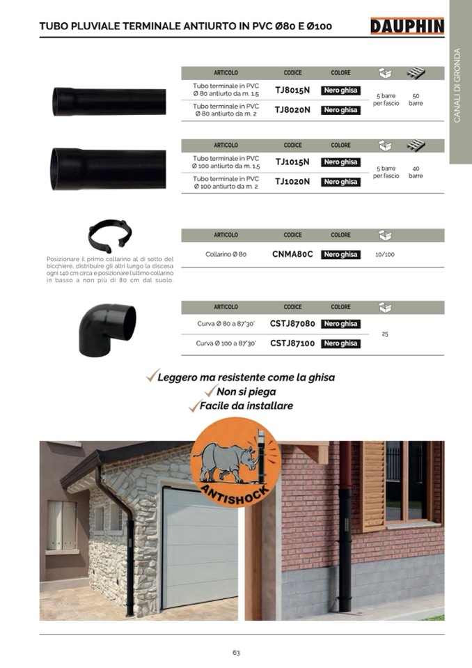 TUBO PLUVIALE TERMINALE ANTIURTO IN PVC Ø80 E Ø100