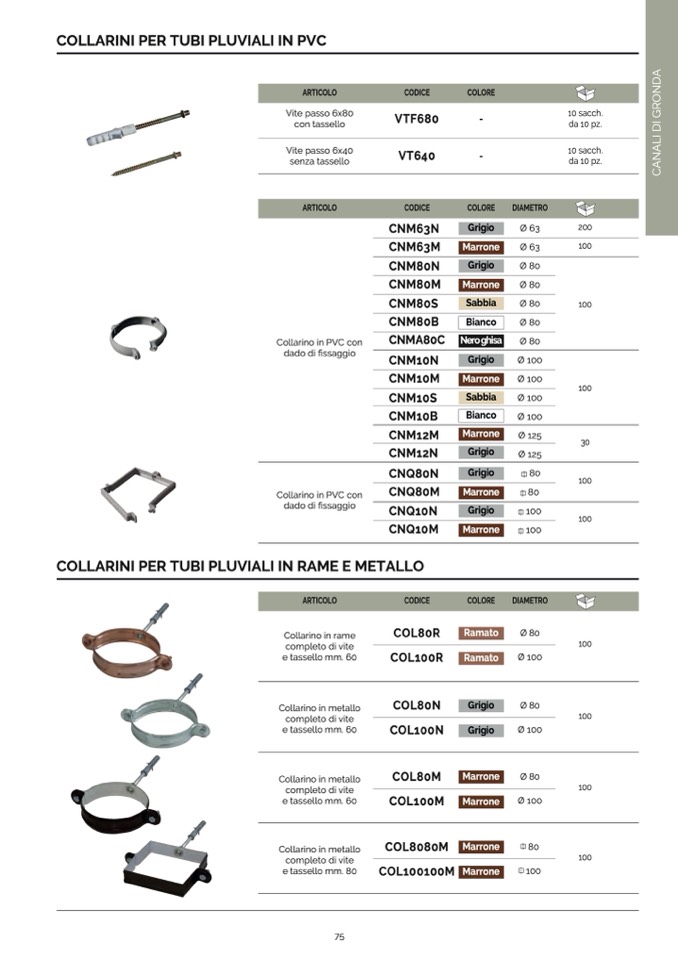 COLLARINI PER TUBI PLUVIALI IN PVC