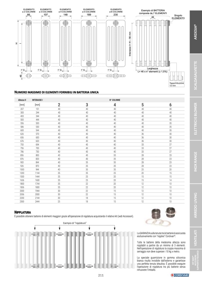 È possibile ottenere batterie di elementi maggiori grazie all’operazione di nipplatura acquistando il relativo kit (vedi Accessori).