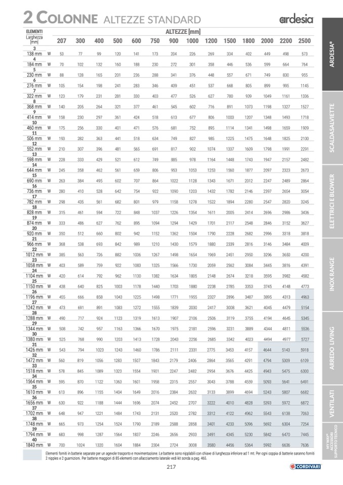 Elementi forniti in batterie separate per un agevole trasporto e movimentazione. Le batterie sono nipplabili con chiave di lunghezza inferiore ad 1 mt. Per ogni coppia di batterie saranno forniti
