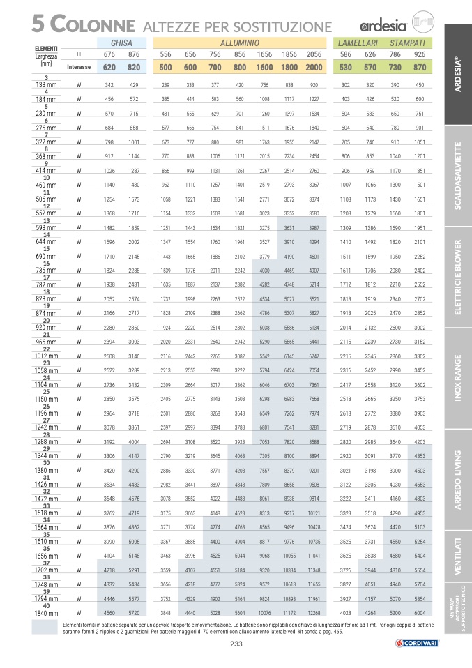 Elementi forniti in batterie separate per un agevole trasporto e movimentazione. Le batterie sono nipplabili con chiave di lunghezza inferiore ad 1 mt. Per ogni coppia di batterie