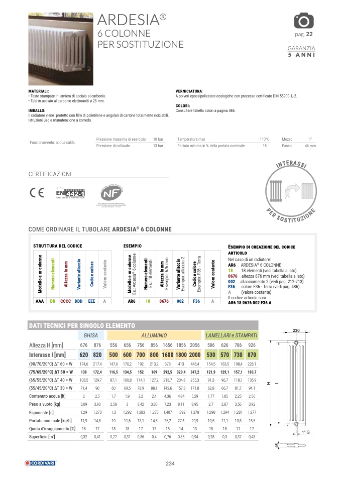 altezza 676 mm (vedi tabella a lato)