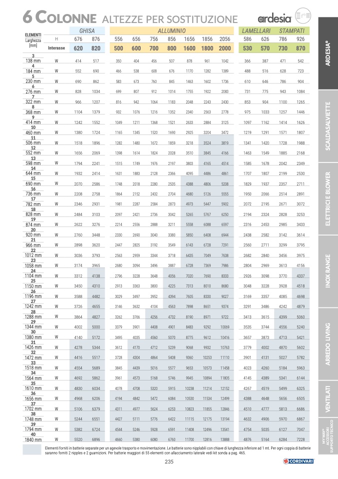 saranno forniti 2 nipples e 2 guarnizioni. Per batterie maggiori di 55 elementi con allacciamento laterale vedi kit sonda a pag. 465.