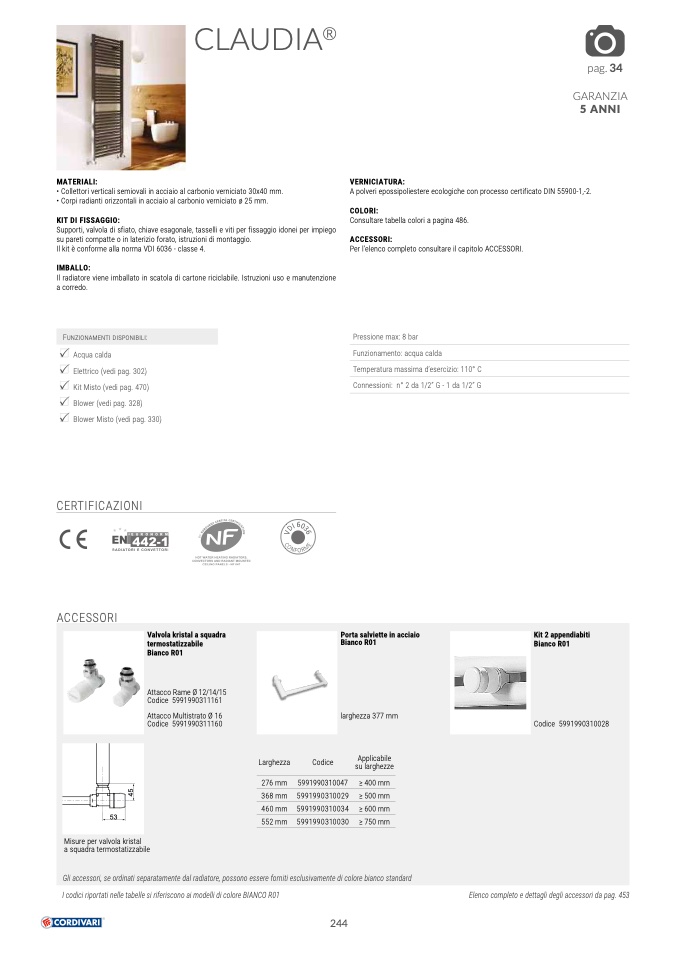 Gli accessori, se ordinati separatamente dal radiatore, possono essere forniti esclusivamente di colore bianco standard