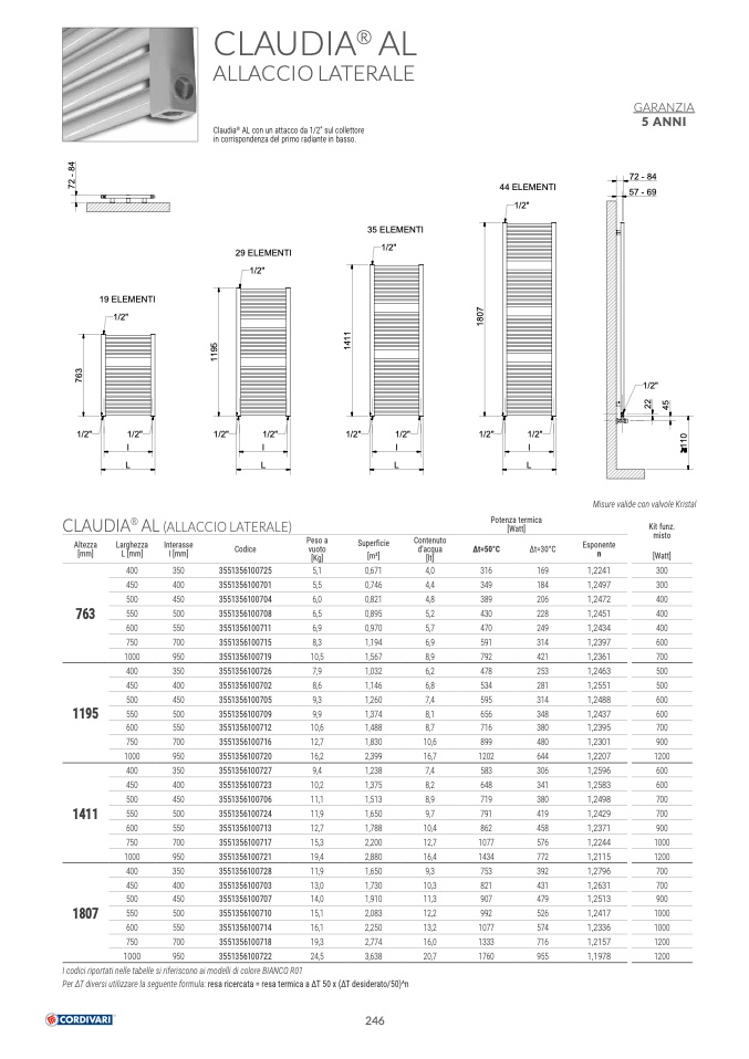 Per ΔT diversi utilizzare la seguente formula: resa ricercata = resa termica a ΔT 50 x (ΔT desiderato/50)^n