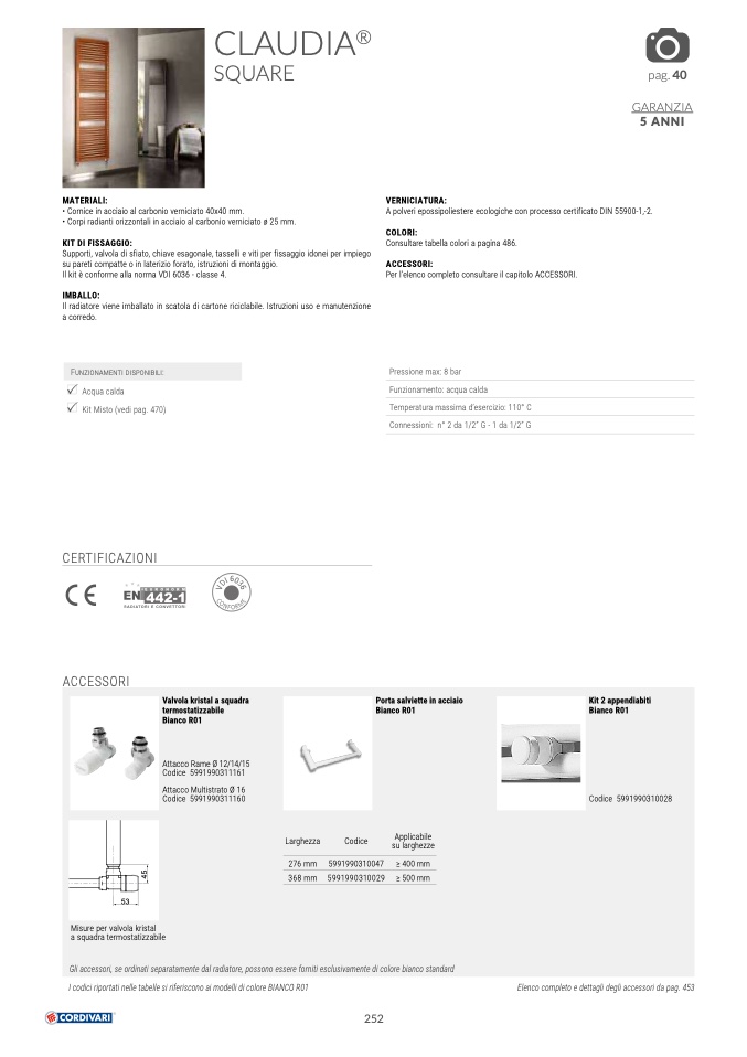 Gli accessori, se ordinati separatamente dal radiatore, possono essere forniti esclusivamente di colore bianco standard