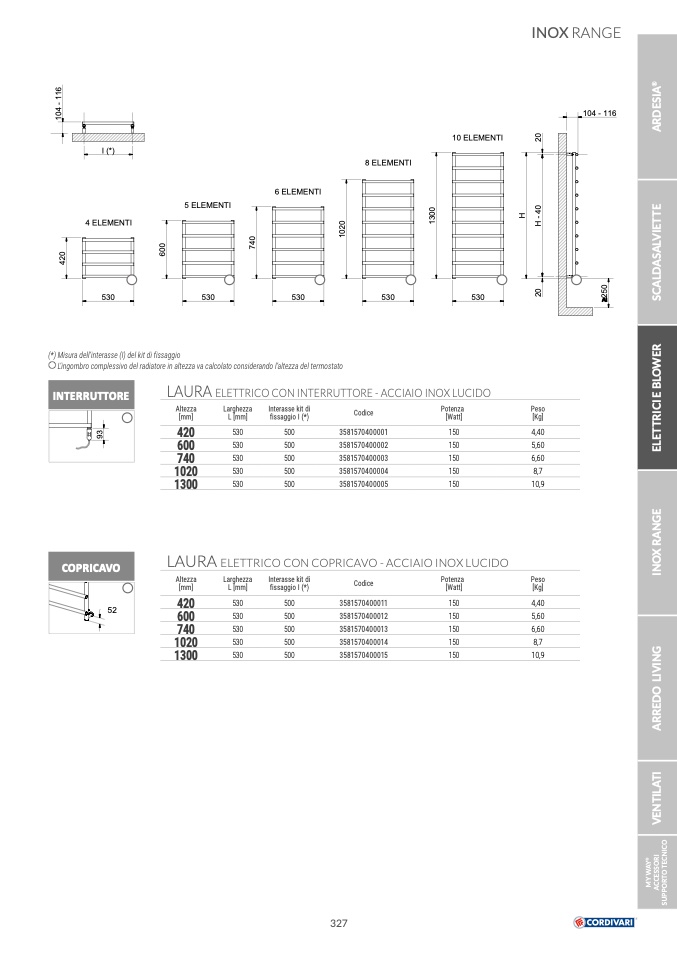 L’ingombro complessivo del radiatore in altezza va calcolato considerando l’altezza del termostato