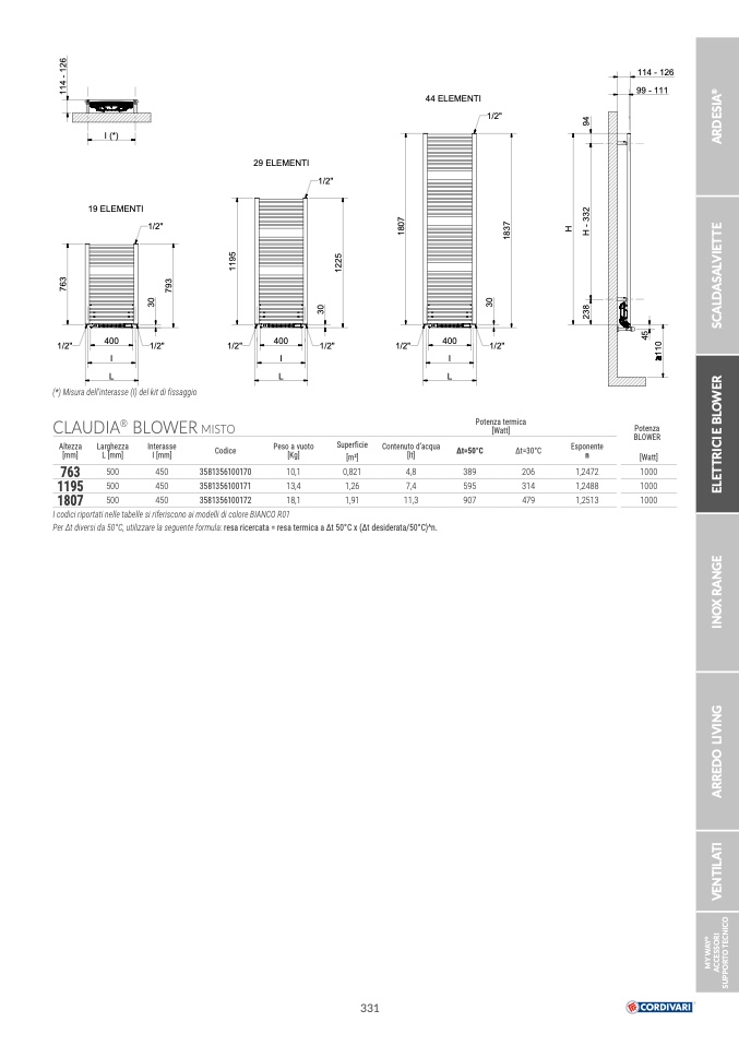 Per Δt diversi da 50°C, utilizzare la seguente formula: resa ricercata = resa termica a Δt 50°C x (Δt desiderata/50°C)^n.
