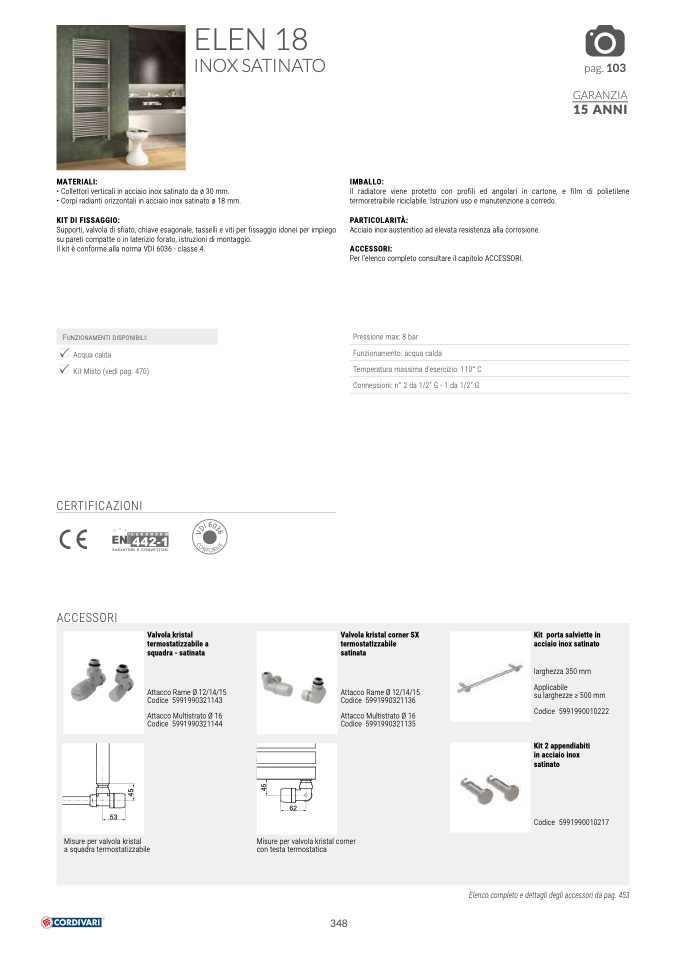 • Corpi radianti orizzontali in acciaio inox satinato ø 18 mm.