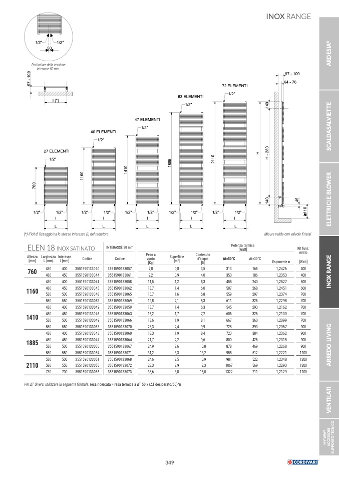 Per ΔT diversi utilizzare la seguente formula: resa ricercata = resa termica a ΔT 50 x (ΔT desiderato/50)^n