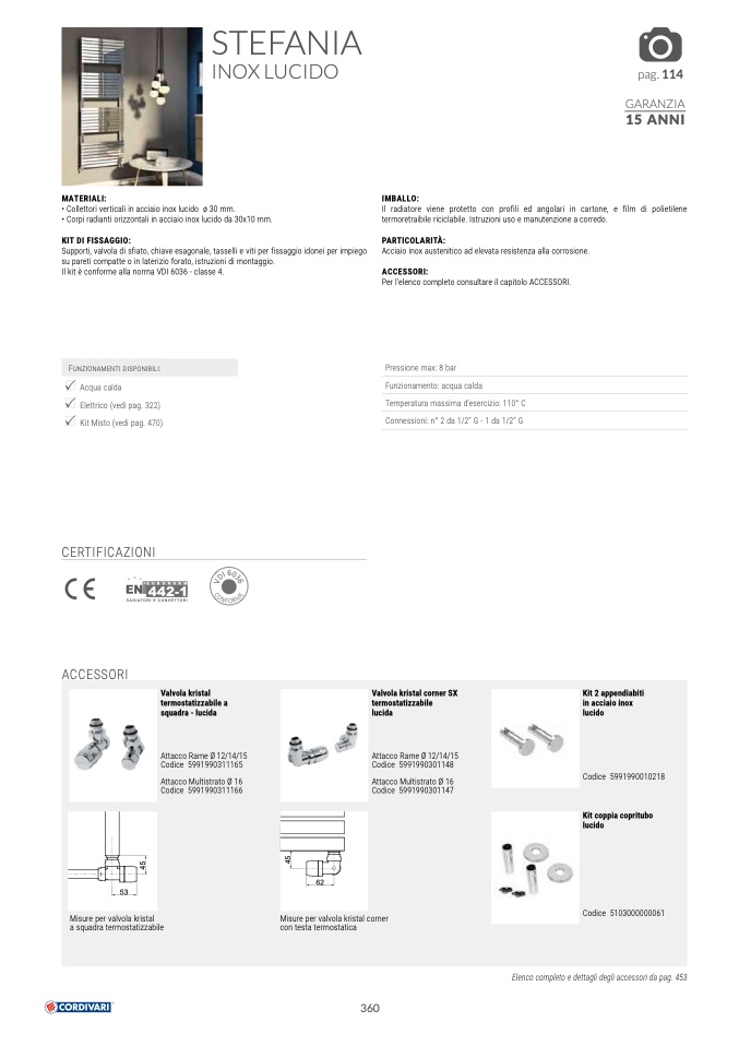 • Collettori verticali in acciaio inox lucido ø 30 mm.