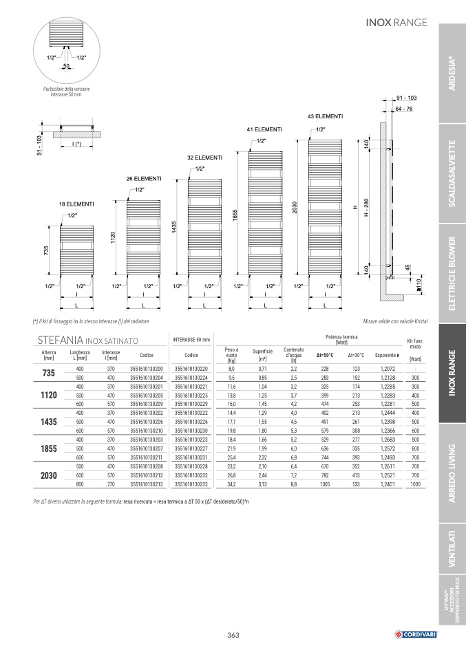 Per ΔT diversi utilizzare la seguente formula: resa ricercata = resa termica a ΔT 50 x (ΔT desiderato/50)^n