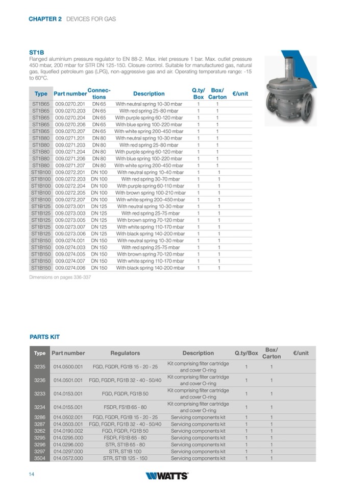 450 mbar, 200 mbar for STR DN 125-150. Closure control. Suitable for manufactured gas, natural