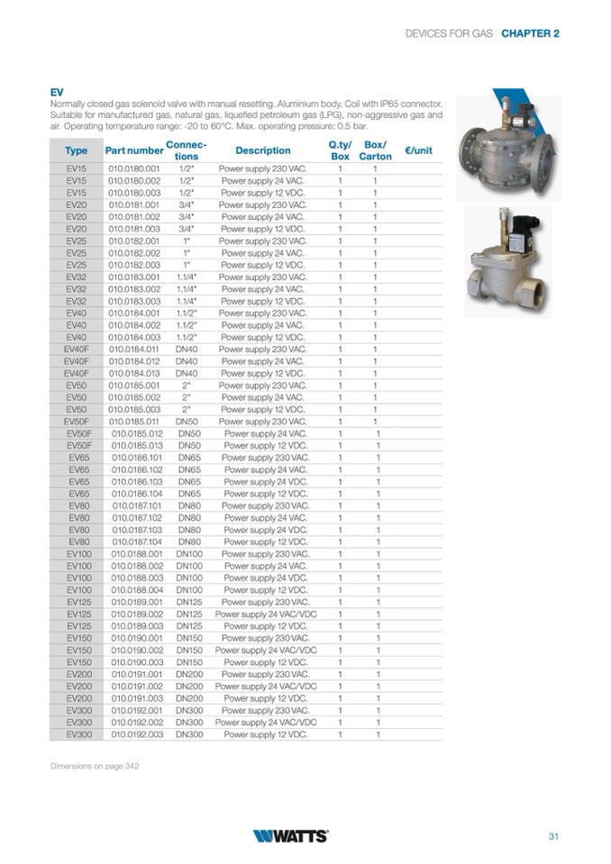 Normally closed gas solenoid valve with manual resetting. Aluminium body. Coil with IP65 connector.