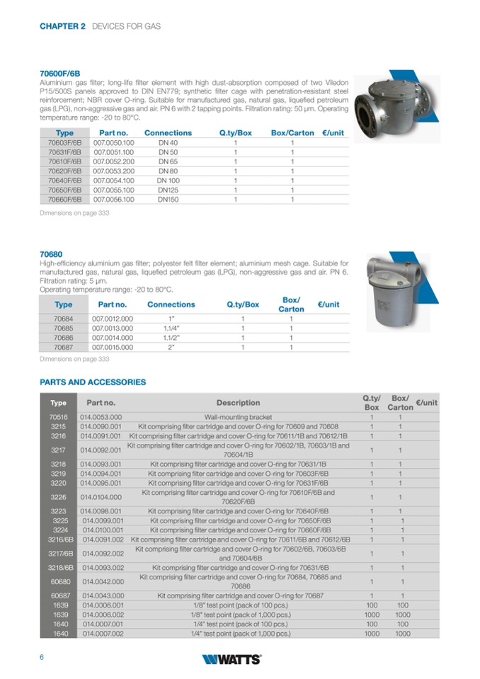 gas (LPG), non-aggressive gas and air. PN 6 with 2 tapping points. Filtration rating: 50 μm. Operating