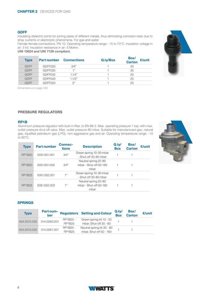 outlet pressure shut-off valve. Max. outlet pressure 80 mbar. Suitable for manufactured gas, natural