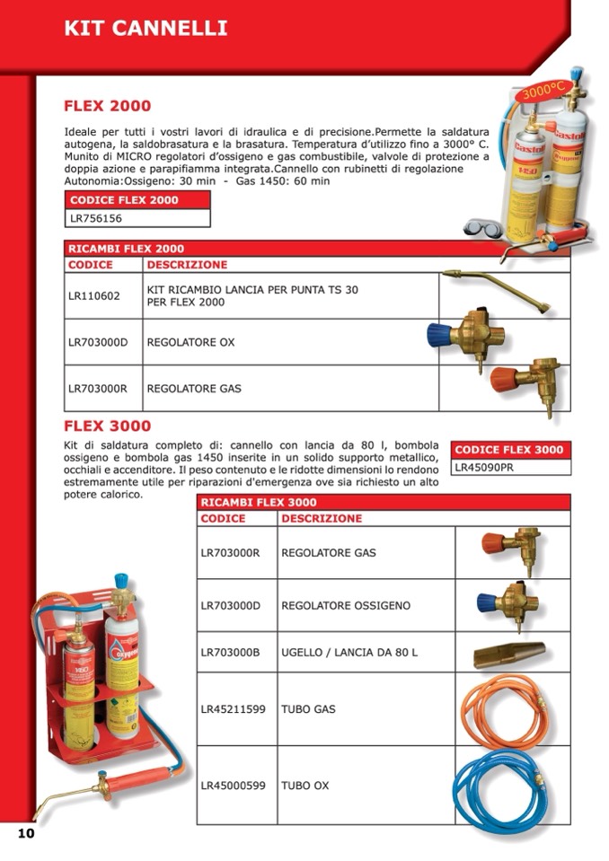 autogena, la saldobrasatura e la brasatura. Temperatura d’utilizzo fino a 3000° C.