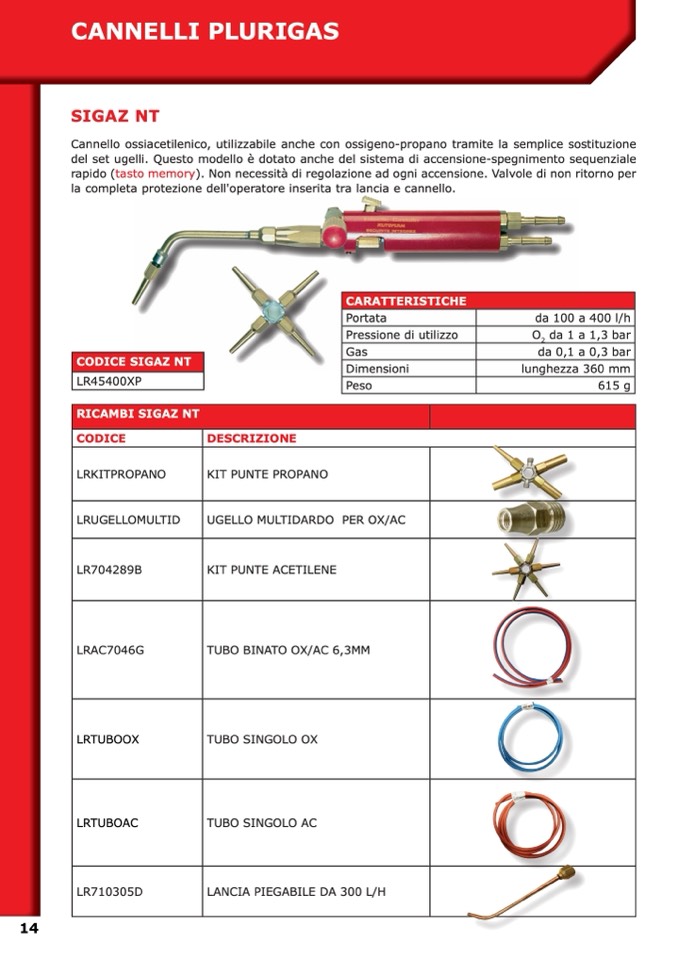 Cannello ossiacetilenico, utilizzabile anche con ossigeno-propano tramite la semplice sostituzione