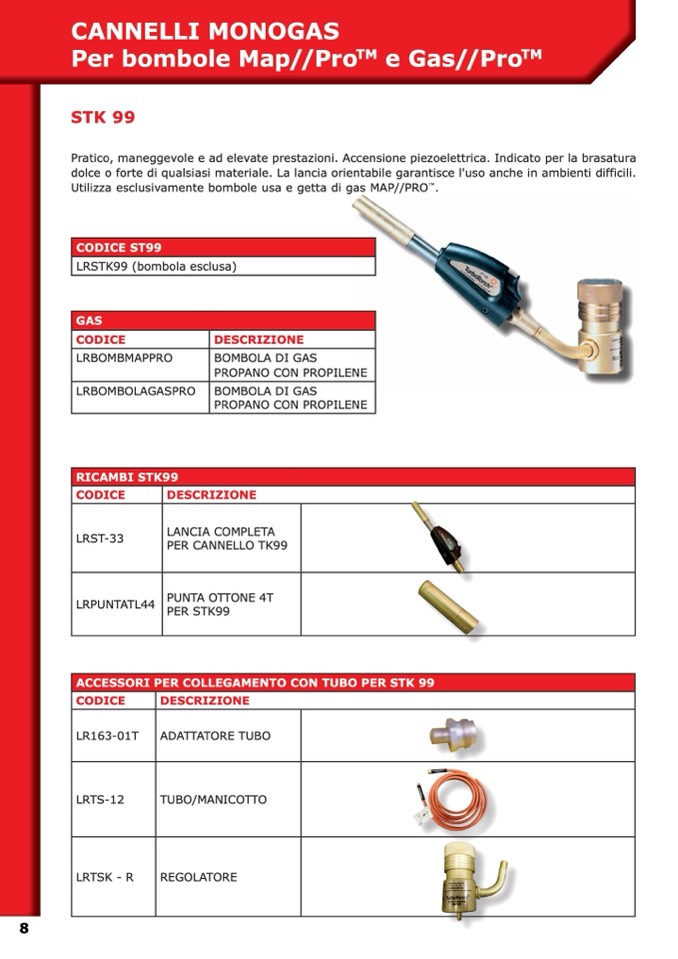 Pratico, maneggevole e ad elevate prestazioni. Accensione piezoelettrica. Indicato per la brasatura