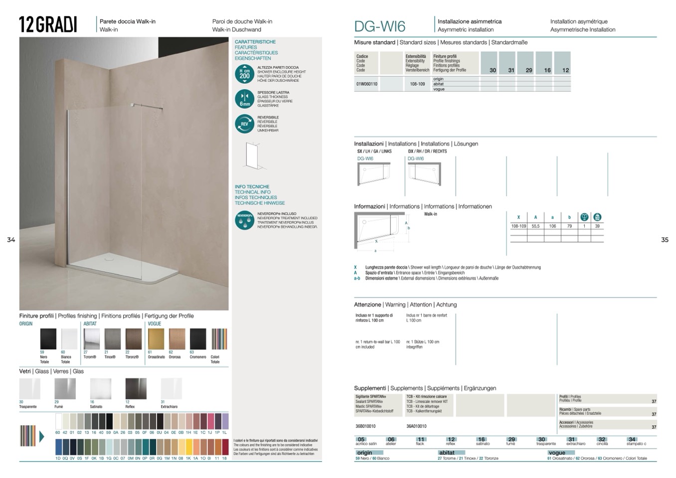 Lunghezza parete doccia \ Shower wall length \ Longueur de paroi de douche \ L