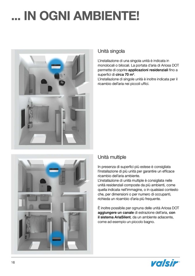 monolocali o bilocali. La portata d’aria di Ariosa DOT