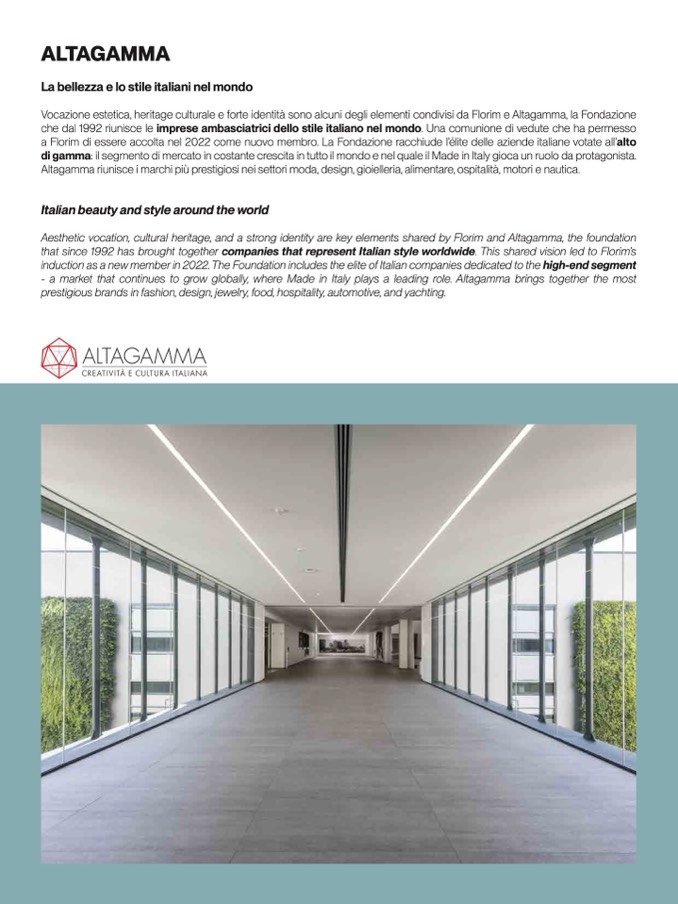 induction as a new member in 2022. The Foundation includes the elite of Italian companies dedicated to the high-end segmen