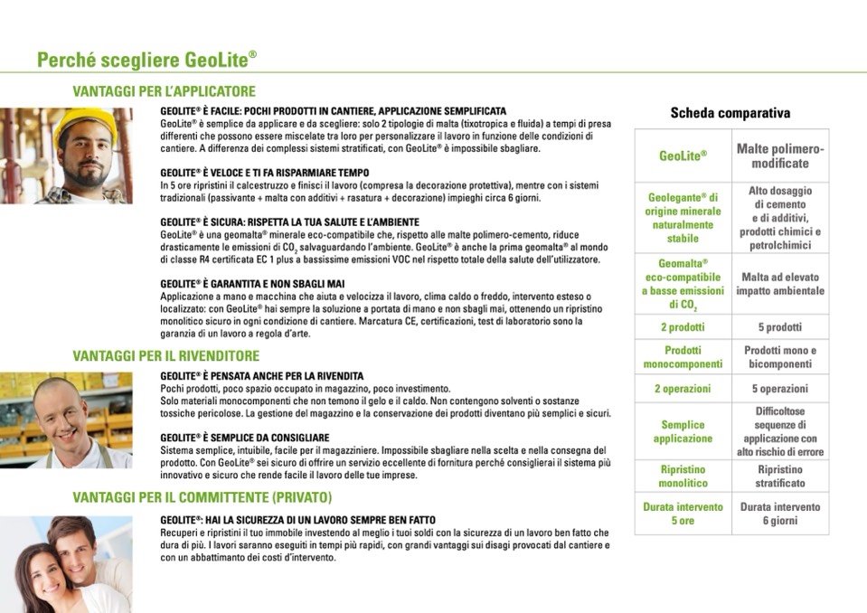 minerale eco-compatibile che, rispetto alle malte polimero-cemento, riduce