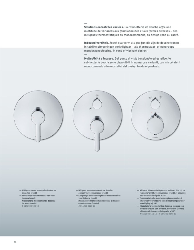 Inbouwdiversiteit. Zowel qua vorm als qua functie zijn de douchekranen