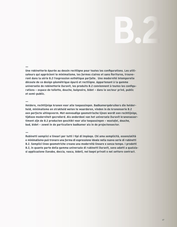 B.2, in quanto parte della gamma universale di rubinetti Duravit, sono adatti a qualsia-