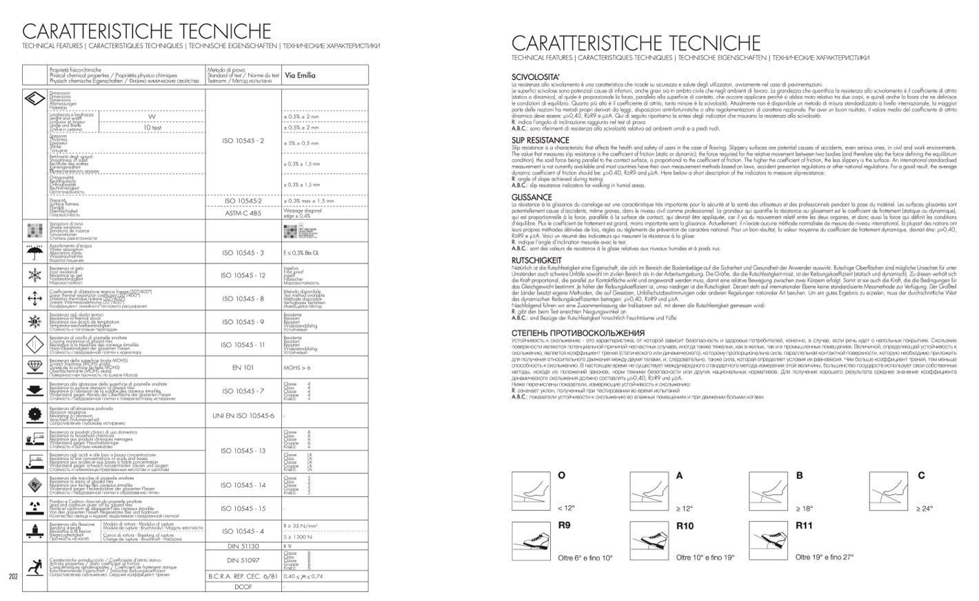 Caratteristiche antisdrucciolo / Coefficiente d’attrito statico